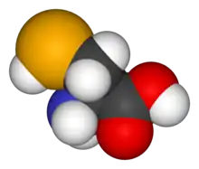 - ↑ Byun BJ, Kang YK (May 2011). "Conformational preferences and pK(a) value of selenocysteine residue". Biopolymers. 95 (5): 345–53. doi:10.1002/bip.21581. PMID 21213257. S2CID 11002236.