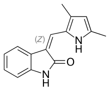 - ↑ Sun L, Tran N, Tang F, App H, Hirth P, McMahon G, et al. (July 1998). "Synthesis and biological evaluations of 3-substituted indolin-2-ones: a novel class of tyrosine kinase inhibitors that exhibit selectivity toward particular receptor tyrosine kinases". Journal of Medicinal Chemistry. 41 (14): 2588–2603. doi:10.1021/jm980123i. PMID 9651163.