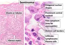 | Histopathology of classical seminoma, with typical features.[1] | |