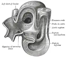 ![]() Interior of dorsal half of heart of human embryo of about thirty-five days. | |