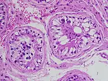 | Seminiferous tubules demonstrating maturation arrest. | |