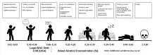 The definition of a unit of alcohol ranges between 8 and 14 grams of pure ethanol depending on the country.[6] There is no agreement on definitions of a low, moderate or high dose of alcohol either. The U.S. National Institute on Alcohol Abuse and Alcoholism defines a moderate dose as alcohol intake up to two standard drinks or 28 grams for men and one standard drink or 14 grams for women.[7] The immediate effect of alcohol depends on the drinker's blood alcohol concentration (BAC). BAC can be different for each person depending on their age, sex, pre-existing health condition, even if they drink the same amount of alcohol.[8]