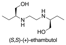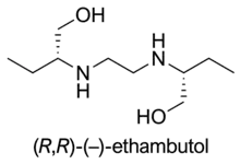 - Ethambutol: Whereas the (S,S)-(+)-enantiomer is used to treat tuberculosis, the (R,R)-(–)-ethambutol may cause blindness.[20]
