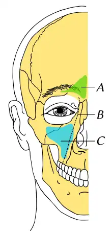 A maxillary implant is an implant that is placed between the jaw and the maxillary sinuses. It is inserted during a sinus lift or augmentation, and is used to increase the amount of bone to support dental implants.[1] Implants are either inserted after drilling, or by using a non-drilling method known as the osteotome technique.[1] Issues such as bulging within the sinuses can occur with maxillary implants.[2][3]