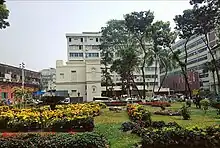 Mitford Hospital, one of the largest hospitals in Bangladesh, is located adjacent to the college campus. It occupies an oblong area of about 12.8 acres of land on the bank of Buriganga river.[15] The hospital complex comprises more than fourteen buildings, most of which were originally single-storied and later have been raised to multiple storeys. With gradual expansion since its initial foundation, the campus comprises a mix of buildings depicting both modern and colonial architecture.[15]