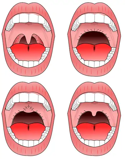 The procedure most commonly performed for sleep apnea is the uvulopalatopharyngoplasty (UPPP). This involves removal of the tonsils if still present, and a subsequent palatal procedure. The tonsil pillars are often sutured closed—and the uvula is either trimmed, cut, folded, reshaped, or sutured to the soft palate.[7] Studies have shown that treatment effect of UPPP with tonsillectomy increases with tonsil size.[8]