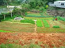 A smallholding or smallholder is a small farm operating under a small-scale agriculture model.[2] Definitions vary widely for what constitutes a smallholder or small-scale farm, including factors such as size, food production technique or technology, involvement of family in labor and economic impact.[3] There are an estimated 500 million smallholder farms in developing countries of the world alone, supporting almost two billion people.[4][5] Smallholdings are usually farms supporting a single family with a mixture of cash crops and subsistence farming. As a country becomes more affluent, smallholdings may not be self-sufficient. Still, they may be valued for providing supplemental sustenance, recreation, and general rural lifestyle appreciation (often as hobby farms). As the sustainable food and local food movements grow in affluent countries, some of these smallholdings are gaining increased economic viability in the developed world as well.