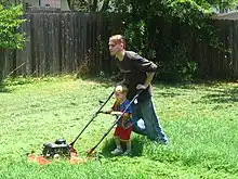 While grasses release small amounts of hydrocarbons passively and in response to strong sunlight, these emissions may increase by a factor of 180 when leaves are cut or damaged.[5] Highly reactive hydrocarbons released by cut grass combine with gases such as nitrogen oxides and exacerbate photochemical smog and urban air pollution by contributing to the formation of aerosols and ozone.[6][7] In cities, lawnmowing can account for 10% of the total hydrocarbon release into the atmosphere.[5]