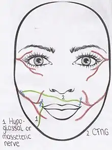 - 1 2 3 4 5 6 7 8 9 Faria JC, Scopel GP, Ferreira MC (January 2010). "Facial reanimation with masseteric nerve: babysitter or permanent procedure? Preliminary results". Ann Plast Surg. 64 (1): 31–4. doi:10.1097/SAP.0b013e3181999ea9. PMID 19801918. S2CID 46129054.