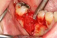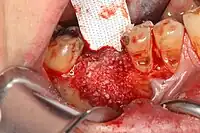 - ↑ Fickl S, Zuhr O, Wachtel H, Stappert CF, Stein JM, Hürzeler MB (October 2008). "Dimensional changes of the alveolar ridge contour after different socket preservation techniques". J. Clin. Periodontol. 35 (10): 906–13. doi:10.1111/j.1600-051X.2008.01305.x. PMID 18713258.