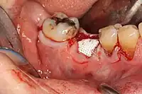 - ↑ Simion M, Scarano A, Gionso L, Piattelli A (1996). "Guided bone regeneration using resorbable and nonresorbable membranes: a comparative histologic study in humans". Int J Oral Maxillofac Implants. 11 (6): 735–42. PMID 8990634.