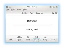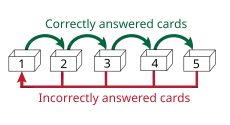 - Confidence-based repetition: A user rates their confidence in each digital flashcard, e.g. on a scale of 1–5; a lower-confidence card is repeated more frequently until the user upgrades their confidence rating in it.[36][37]