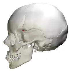 ![]() Lateral view of sphenoparietal suture (red) | |
