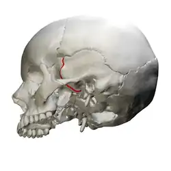 ![]() Inferolateral view of sphenosquamosal suture (red) | |