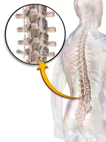Spinal disease refers to a condition impairing the backbone.[1] These include various diseases of the back or spine ("dorso-"), such as kyphosis. Dorsalgia refers to back pain. Some other spinal diseases include spinal muscular atrophy, ankylosing spondylitis, scoliosis, lumbar spinal stenosis, spina bifida, spinal tumors, osteoporosis and cauda equina syndrome.