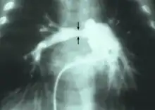Stenosis of the right pulmonary artery in a patient which was due to a case of congenital rubella.