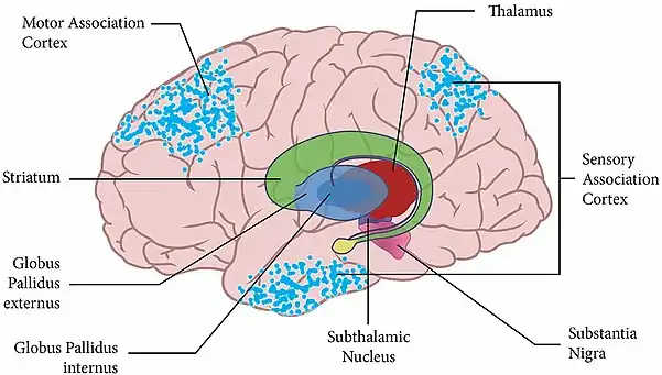 - ↑ Delong, M. R.; Wichmann, T. (2007). "Circuits and circuit disorders of the basal ganglia". Archives of Neurology. 64 (1): 20–4. doi:10.1001/archneur.64.1.20. PMID 17210805. S2CID 9606341.