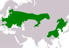 The striped field mouse has an extensive but disjunct distribution, split into two ranges. The first reaches from central and eastern Europe to Lake Baikal (Russia) in the north, and China in the south. The second includes parts of the Russian Far East and from there reaches from Mongolia to Japan. Its expansion across Eastern Europe appears to be relatively recent; the species is thought to have reached Austria in the 1990s.[4]
