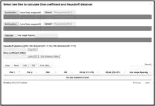 This can calculate the Dice similarity coefficient and Hausdorff distance between two segmentation masks (in .nrrd format) in a standard web browser.