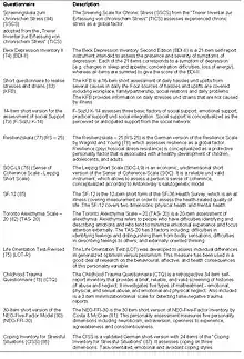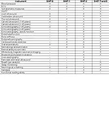 The following table shows all the instruments which are integrated in the SHIP examination.