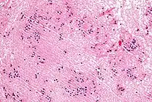 | Micrograph of a subependymoma showing the characteristic clustering of nuclei. H&E stain. | |