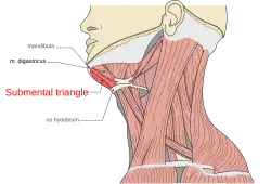 The submental triangle (or suprahyoid triangle) is a division of the anterior triangle of the neck.