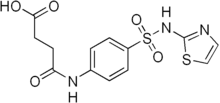 Succinylsulfathiazole (also known as sulfasuxidine) is a sulfonamide.[1][2] It is also spelled as succinylsulphathiazole. It is a white or yellow-white crystalline powder. It dissolves in aqueous solutions of alkali hydroxides and carbonates but is very slightly soluble in water.