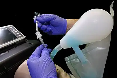 - ↑ Pilbery, Richard; Teare, M. Dawn (2019-06-01). "Soiled airway tracheal intubation and the effectiveness of decontamination by paramedics (SATIATED): a randomised controlled manikin study". British Paramedic Journal. 4 (1): 14–21. doi:10.29045/14784726.2019.06.4.1.14. ISSN 1478-4726. PMC 7706770. PMID 33328824.
