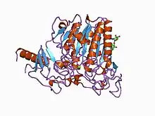 Metachromatic leukodystrophy, also known as MLD, is a recessive lysosomal storage disorder. It is believed to be caused by a deficiency in arylsulfatase A.[1][9] Arylsulfatase A is a lysosomal sulfatase that is able to hydrolyze the 3-O-sulfogalactosylceramide and 3-O-sulfolactosylceramide. Both 3-O-sulfolactosylceramide and 3-O-sulfogalactosylceramide can be located mainly in the central nervous system as well as in the peripheral nervous system.[1] When lacking the lysosomal enzyme or mutations in the gene coding for saposin B occur, this can lead to the accumulation of lysosomal sulfatide, which then develops into metachromatic leukodystrophy.[1][3]