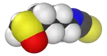 Sulforaphane (sometimes sulphoraphane in British English) is a compound within the isothiocyanate group of organosulfur compounds.[1] It is produced when the enzyme myrosinase transforms glucoraphanin, a glucosinolate, into sulforaphane upon damage to the plant (such as from chewing or chopping during food preparation), which allows the two compounds to mix and react.