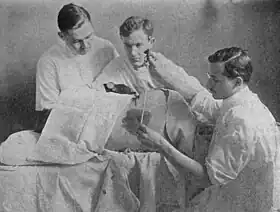 ![]() Site of the operation is draped off with sterile towels |
