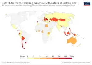 - Indicator 11.5.1: "Number of deaths, missing persons and directly affected persons attributed to disasters per 100,000 population. Indicators measured here report mortality rates internally displaced persons, missing persons and total numbers affected by natural disasters"