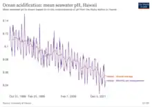 Text was copied from this source, which is available under a Creative Commons Attribution 4.0 International License - ↑ Terhaar, Jens; Frölicher, Thomas L.; Joos, Fortunat (2023). "Ocean acidification in emission-driven temperature stabilization scenarios: the role of TCRE and non-CO2 greenhouse gases". Environmental Research Letters. 18 (2): 024033. Bibcode:2023ERL....18b4033T. doi:10.1088/1748-9326/acaf91. ISSN 1748-9326. S2CID 255431338.
