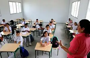 SDG 4 consists of 7 targets, 3 means of actual application, and 12 indicators.[10] Eight of them are supposed to be achieved by 2030, while one is to be achieved by 2020 and the rest have no target years. Each of the targets has one or more indicators to measure progress. The targets include free primary and secondary education (4.1), equal access to quality pre-primary education (4.2), equal access to affordable technical, vocational and higher education (4.3), increase the number of people with relevant skills for financial success (4.4), eliminate all discrimination in education (4.5), universal literacy and numeracy (4.6), education for sustainable development and global citizenship (4.7), build and upgrade inclusive and safe schools (4. a), expand higher education scholarships for developing countries (4. b) and increase the supply of qualified teachers in developing countries (4. c) [2]