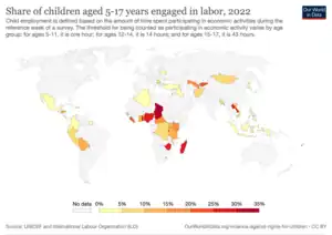 In 2019, "22 per cent of the world's young people were not in employment, education or training, a figure that has hardly changed since 2005".[14]