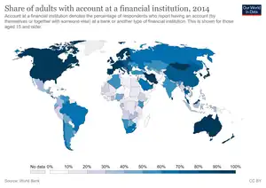 - Indicator 8.10.2: Proportion of adults (15 years and older) with an account at a bank or other financial institution or with a mobile-money-service provider