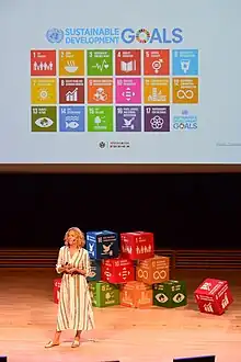 Global Goals Week is an annual week-long event in September for action, awareness, and accountability for the Sustainable Development Goals.[91] It is a shared commitment for over 100 partners to ensure quick action on the SDGs by sharing ideas and transformative solutions to global problems.[92] It first took place in 2016. It is often held concurrently with Climate Week NYC.[93]