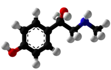 There has been some confusion about the biological effects of synephrine because of the similarity of this un-prefixed name to the names m-synephrine, Meta-synephrine and Neosynephrine, all of which refer to a related drug and naturally-occurring amine more commonly known as phenylephrine. Although there are chemical and pharmacological similarities between synephrine and phenylephrine, they are nevertheless different substances. The confusion is compounded by the fact that synephrine has been marketed as a drug under numerous different names, including Sympatol, Sympathol, Synthenate, and oxedrine, while phenylephrine has also been called m-Sympatol. The synephrine with which this article deals is sometimes referred to as p-synephrine in order to distinguish it from its positional isomers, m-synephrine and o-synephrine. A comprehensive listing of alternative names for synephrine may be found in the ChemSpider entry (see Chembox, at right). Confusion exists over the distinctions between p- and m-synephrine.[50] However, an examination of the references cited in support of this statement show that all the evidence for the presence of m-synephrine in C. aurantium derives from a report by Penzak and co-workers,[51] whose Abstract states that m-synephrine was found in C. aurantium, whereas a close reading of the text of the paper itself reveals that the authors (although apparently uncertain about which synephrine regio-isomer had been found in the plant by earlier investigators) were aware that their analytical technique could not distinguish between m- and p-synephrine, and did not claim that m-synephrine was present. Thus the Abstract is at variance with the experimental findings given in the full text of the paper, but this error has propagated through subsequent publications. Even the name "p-synephrine" is not unambiguous, since it does not specify stereochemistry. The only completely unambiguous names for synephrine are: (R)-(−)-4-[1-hydroxy-2-(methylamino)ethyl]phenol (for the l-enantiomer); (S)-(+)-4-[1-hydroxy-2-(methylamino)ethyl]phenol (for the d-enantiomer); and (R,S)-4-[1-hydroxy-2-(methylamino)ethyl]phenol (for the racemate, or d,l-synephrine) (see Chemistry section).