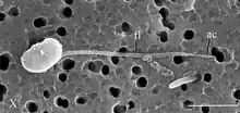 | SEM image of Syssomonas. ac = acroneme, fl = flagellum | |