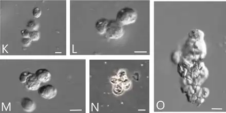 - 1 2 3 4 5 6 7 8 9 10 11 Tikhonenkov DV, Hehenberger E, Esaulov AS, Belyakova OI, Mazei YA, Mylnikov AP, Keeling PJ (2020). "Insights into the origin of metazoan multicellularity from predatory unicellular relatives of animals". BMC Biology. 18 (1): 39. doi:10.1186/s12915-020-0762-1. PMC 7147346. PMID 32272915.