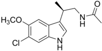 13. 1 2 3 4 5 6 7 8 Mulchahey JJ, Goldwater DR, Zemlan FP (August 2004). "A single blind, placebo controlled, across groups dose escalation study of the safety, tolerability, pharmacokinetics and pharmacodynamics of the melatonin analog beta-methyl-6-chloromelatonin". Life Sciences. 75 (15): 1843–1856. doi:10.1016/j.lfs.2004.03.023. PMID 15302228.