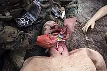 Tactical medicine has been in existence long before it was officially termed 'tactical EMS.' Tactical medicine has its origins on the battlefield. Since human beings have been fighting in wars, tactical medicine has been applied to those wounded in combat.[3] Early kings had personal medics to care for them in the event that they were injured in battle, while the Spartans utilized persons from lower ranking classes, Helots, to tend to their injuries so they could continue fighting. During World War II as well as the Vietnam War, the need for a higher standard of battlefield medicine became increasingly apparent as up to 20% of soldiers wounded in combat would die from their wounds.[4] It was found that the majority of deaths occurred from exsanguination (bleeding to death) or compromised breathing, usually related to a collapsed lung or airway obstruction. Exsanguination in combat was mitigated by the widespread training of military personnel on tourniquet use.[5] Deaths due to airway compromise and other breathing issues were decreased once medics were trained in Basic life support procedures such as inserting airways and using Bag valve masks. Not surprisingly, many of the same injuries such as penetrating trauma, blast injuries, and airway compromise are sustained by law enforcement in their line of duty. Following the widely publicized active shooter situations such as the Columbine High School massacre, Virginia Tech shooting, and others, major changes took place in law enforcement protocol regarding emergency medical support in the field.[4] One of these changes involved training officers in proper care of their own wounds and the wounds of their partners/teammates through interventions such as properly applying a Tourniquet. Many agencies have also put their officers through Emergency medical technician training to obtain additional medical knowledge. An additional option, which most closely resembles tactical EMS, is utilizing a person previously trained as a medical practitioner to provide medical support for law enforcement by either integrating them into the team itself or allowing them to treat casualties in a warm zone (a location that is deemed to be a mild risk for sustaining injuries).[4] Presently, many law enforcement agencies across the nation have recognized the benefit of training a medical professional as a tactical officer and utilizing them in situations where there is a higher risk of sustaining casualties.