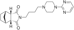 - ↑ Ishizumi K, Kojima A, Antoku F (September 1991). "Synthesis and anxiolytic activity of N-substituted cyclic imides (1R*,2S*,3R*,4S*)-N-[4-[4-(2-pyrimidinyl)-1-piperazinyl]butyl]-2,3- bicyclo[2.2.1]heptanedicarboximide (tandospirone) and related compounds". Chemical & Pharmaceutical Bulletin. 39 (9): 2288–2300. doi:10.1248/cpb.39.2288. eISSN 1347-5223. PMID 1687114.