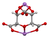 Ball-and-stick model of the bis(μ2-tartrato)-di-antimony anion,[1][2] [Sb2(C4H2O6)2]2