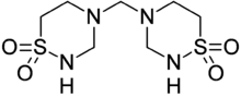 Taurolidine is an antimicrobial that is used to prevent infections in catheters.[1] Side effects and the induction of bacterial resistance is uncommon.[1] It is also being studied as a treatment for cancer.[2]