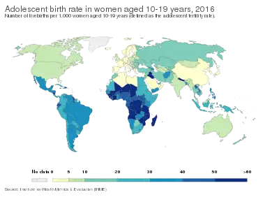 - 1 2 "Adolescent fertility rate (births per 1,000 women ages 15–19) – Data". data.worldbank.org.
