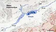 - ↑ Kostin, Sawa (July 2010). "Myocardial telocytes: a specific new cellular entity". Journal of Cellular and Molecular Medicine. 14 (7): 1917–1921. doi:10.1111/j.1582-4934.2010.01111.x. ISSN 1582-1838. PMC 3823273. PMID 20604817.