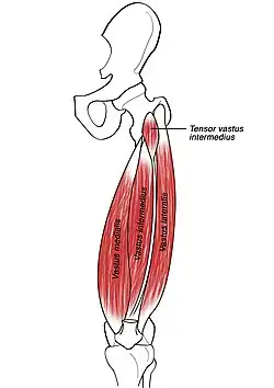 The tensor vastus intermedius is a muscle in the anterior compartment of thigh. It lies between the vastus intermedius and the vastus lateralis. The term tensor vastus intermedius was given by Grob et al. in 2016,[1] although the structure had been reported previously.[2][3]