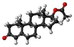 Testosterone acetate (brand names Aceto-Sterandryl, Aceto-Testoviron, Amolisin, Androtest A, Deposteron, Farmatest, Perandrone A), or testosterone ethanoate, also known as androst-4-en-17β-ol-3-one 17β-acetate, is an androgen and anabolic steroid and a testosterone ester.[1][2][3] The drug was first described in 1936 and was one of the first androgen esters and esters of testosterone to be synthesized.[4][5]