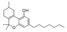 - ↑ Harvey DJ (March 1985). "Identification of hepatic metabolites of n-heptyl-delta-1-tetrahydrocannabinol in the mouse". Xenobiotica; the Fate of Foreign Compounds in Biological Systems. 15 (3): 187–197. doi:10.3109/00498258509045349. PMID 2992174.
